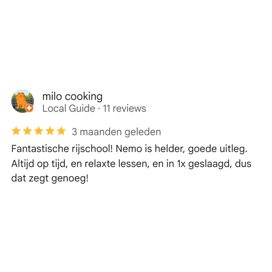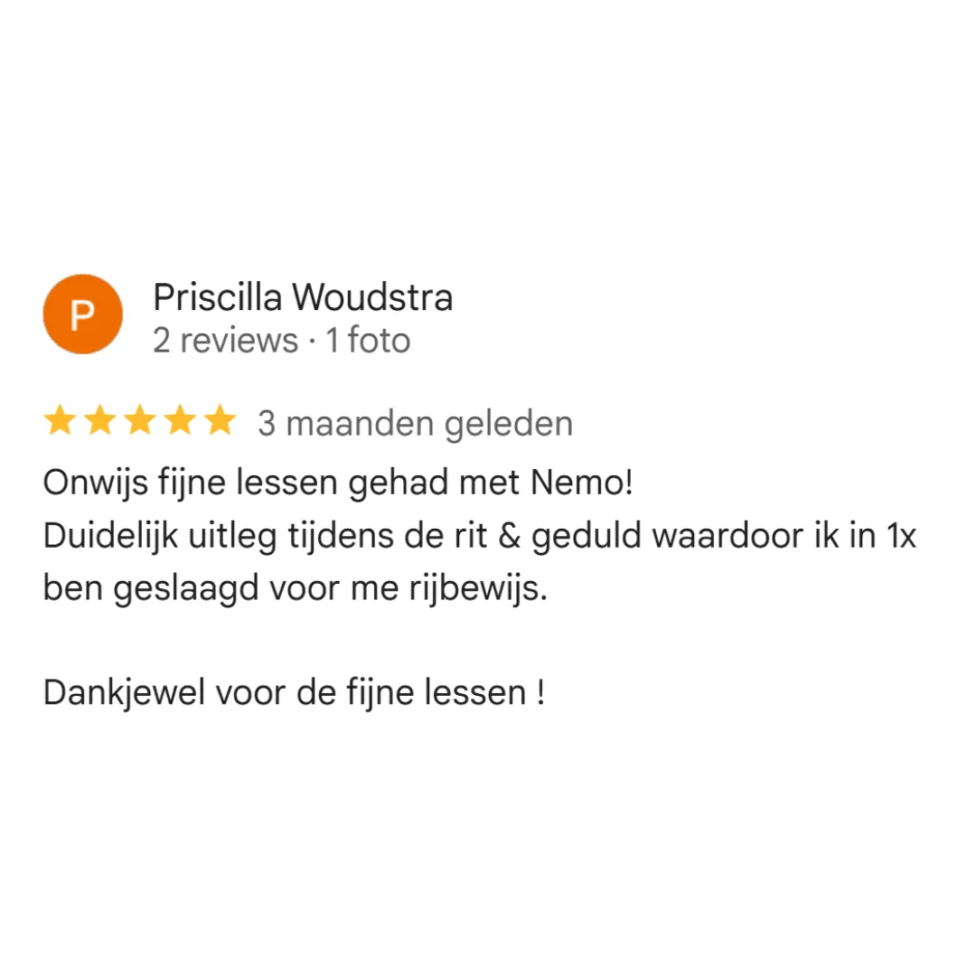 Ben je op zoek naar een betrouwbare rijschool waar je snel en veilig je rijbewijs kunt halen? Zoek dan niet verder! Bij Rijschool Nemo staan we klaar om je te begeleiden op de weg naar rijvaardigheid en zelfverzekerdheid achter het stuur.